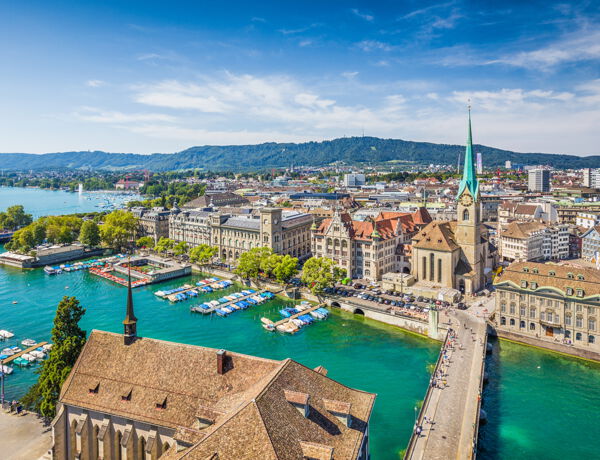 Die Stadt liegt am nördlichen Ende des Zürichsees und am Fluss Limmat. Ob zu Kaffee oder Bier in einem Restaurant am Wasser oder einer Schifffahrt auf dem Zürichsee mit Sicht auf die Alpen: Kaum eine Stadt verbindet Metropole, Natur und Genuss so meisterhaft.